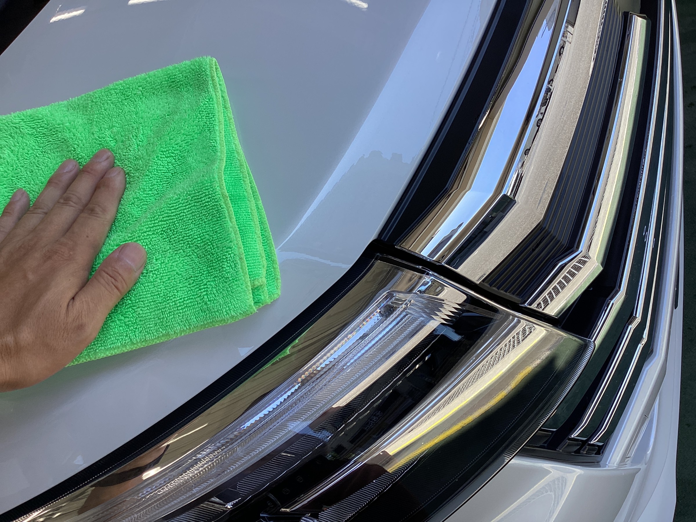 コーティング後のボンネットを、きれいなクロスで触ってみたらツルツル動きます!