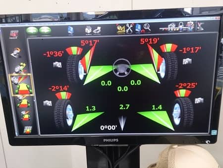 測定後(写真はありませんが)、キャスターと前後のキャンバーはあまり左右差がないので、そのままに。