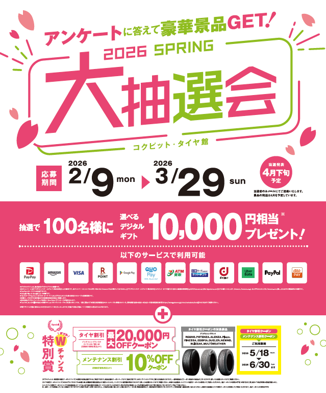 本日からアンケートに答えて豪華景品GET!大抽選会開催中です!