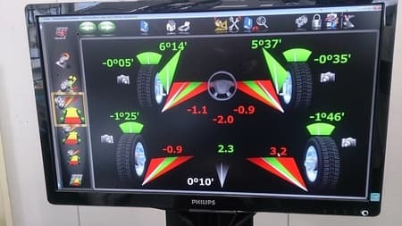 まず測定してみると、前タイヤは大きく外開き気味に。
