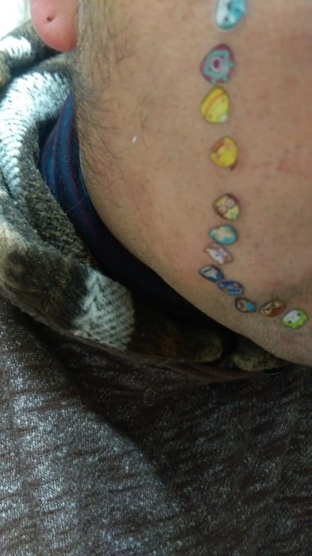 それを真似したかったらしく…シールを身体に貼るという(^^;)
