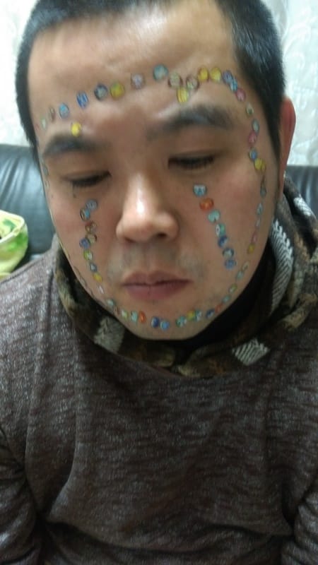 おでこから始まり、ほっぺた、あご…どこまでいくのやら…