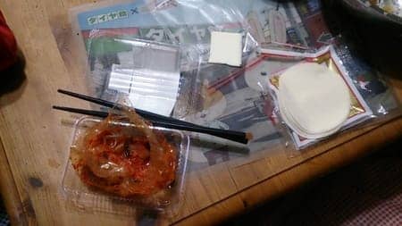 そこでワタクシ、冷蔵庫の中を物色し、キムチとチーズを発見!