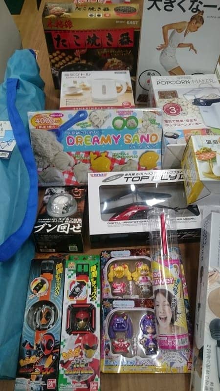 先日、イベント中に当たる家族ワイワイグッズの賞品を店舗の皆で調達してまいりました!
