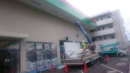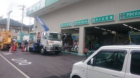 リニューアル進行状況!9 ポスト 2016年6月13日 ついに始まりました外装工事っ!今日はタイヤ館看板の取り外しらしいです。駐車場いっぱいにトラックが・・・・。それでも営業はしております(><)ためらわず入店してくださいm(__)m笑 松尾