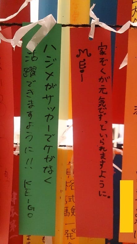 願い事 ポスト 2016年7月7日 本日は七夕。先日願いごとを掛けてきた、大代です。店からほど近いイオンモールの特設コーナーで、短冊に願い事を書き、書いた短冊を結ぶ・・・。娘さんのと並べてみました。皆さん、今夜は天の川にどんな願いごとを掛けますか・・・!? 担当:大代