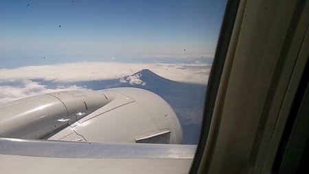 帰りの飛行機は左の窓側席ゲットしました。