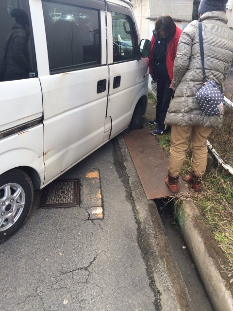 通勤中にタイヤが溝にはまってる人を発見!!!!