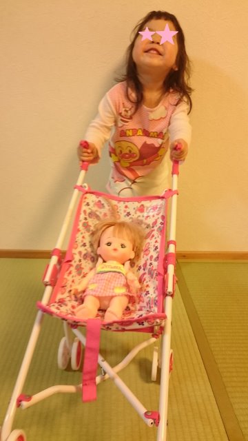 昨年末から3番目の子供の面倒をみる奥さんのマネをする娘・・・。