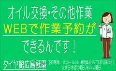 タイヤ館広島祇園です。 愛車のコンディションを保つためには、日々のメンテナンスが欠かせません。 エンジンオイル交換やエアコンフィルター交換、ワイパー交換、防錆コーティングなど 当店では愛車の健康維持に効果的なさまざまなメニューを用意しています。 また、当店ではメンテナンス安全点検...