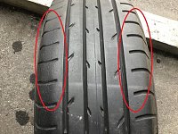 どーも、 マクックスバリュー祇園店斜めにあるタイヤ館広島祇園店 スタッフの上戸です。 今回は、 「ヴィッツ」のアライメントをしましたので、ご紹介いたします。 新品のタイヤ交換の際に一緒にアライメントの作業をさせていただきました。 今回のタイヤの状態がこちらです 左の赤丸の部分と右の赤...