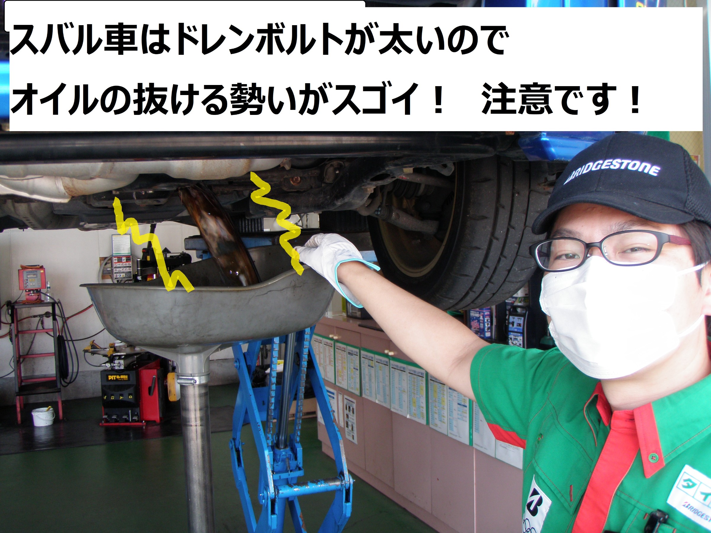 スバル系はエンジンオイル補充中に吹きこぼれる事があるので注意!!