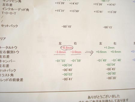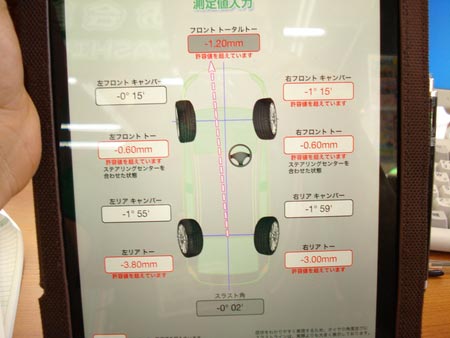 ☆ゴルフジェッタ【アライメント調整】☆ ポスト 2015年7月11日 本日はヴォルクスワーゲンのゴルフジェッタのアライメント調整をさせて頂きました。お客様のお話では後輪の内側が先に減ってしまうとのこと。測定してみたところ…やはり後輪に異常が!トゥが外側に3mmほど向いていました。人間で言うがに股のような状態になってしまっています。しっかり調整させて頂きました!タイヤの片べり等にお悩みの方、是非ご相談ください! 担当:梅原