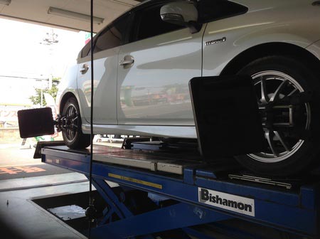 次にアライメント調整の作業に入りました!車高を調整したと言う事でアライメント調整です!