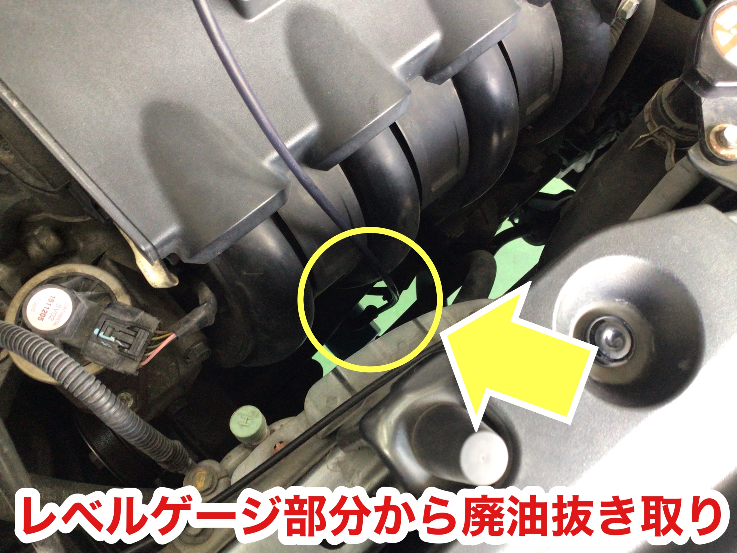 上抜きオイルチェンジャーにてオイルを抜いていきます。