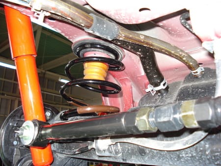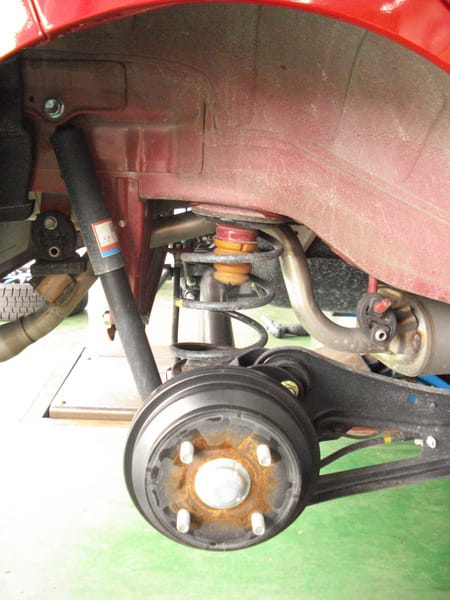 車高ダウンしてずれてしまったリアの車軸をラテラルロッドにて補正しました。