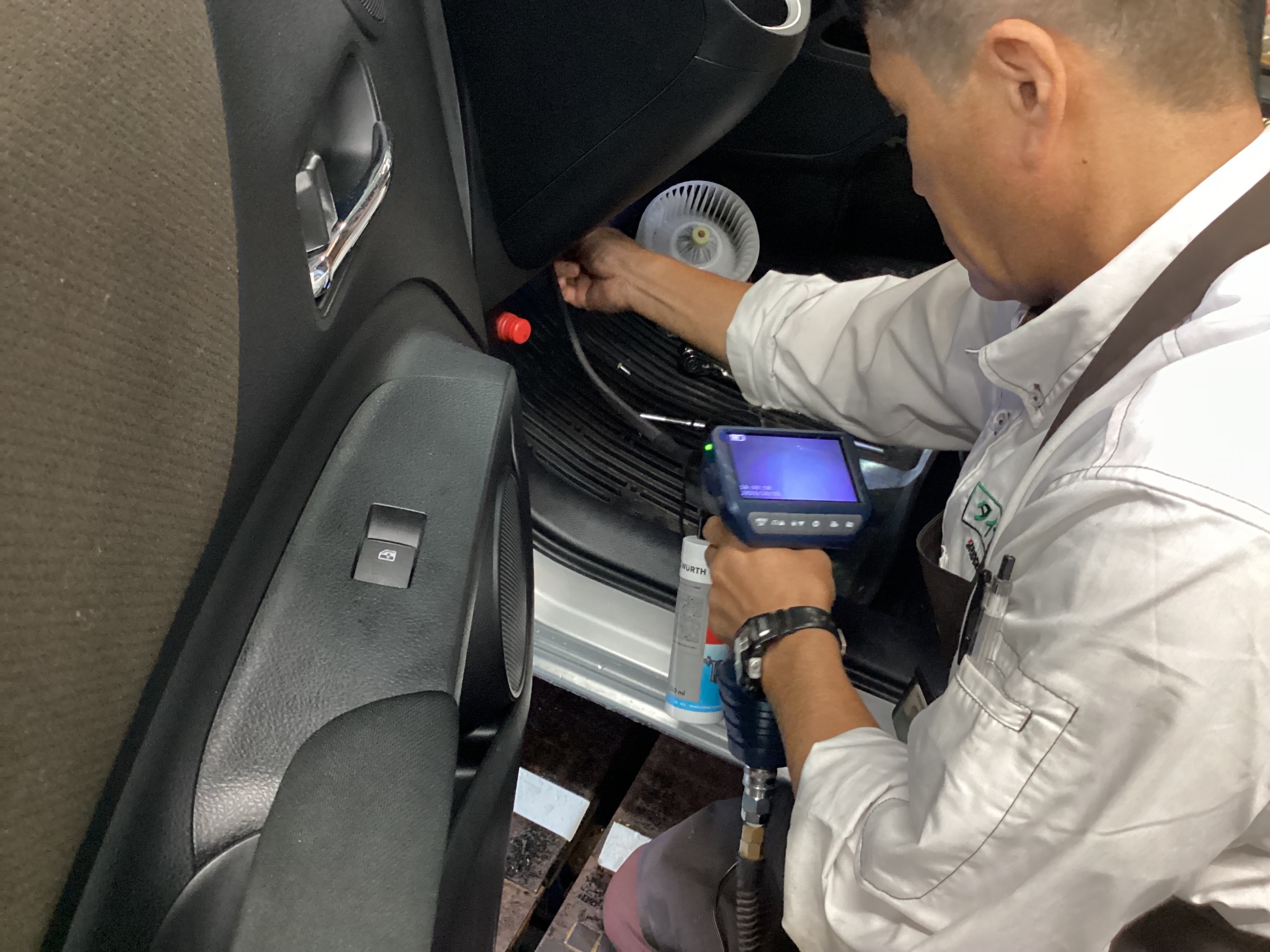 専用の機械でエバポレーターの汚れた部分をモニターで見ながら洗浄していきます。