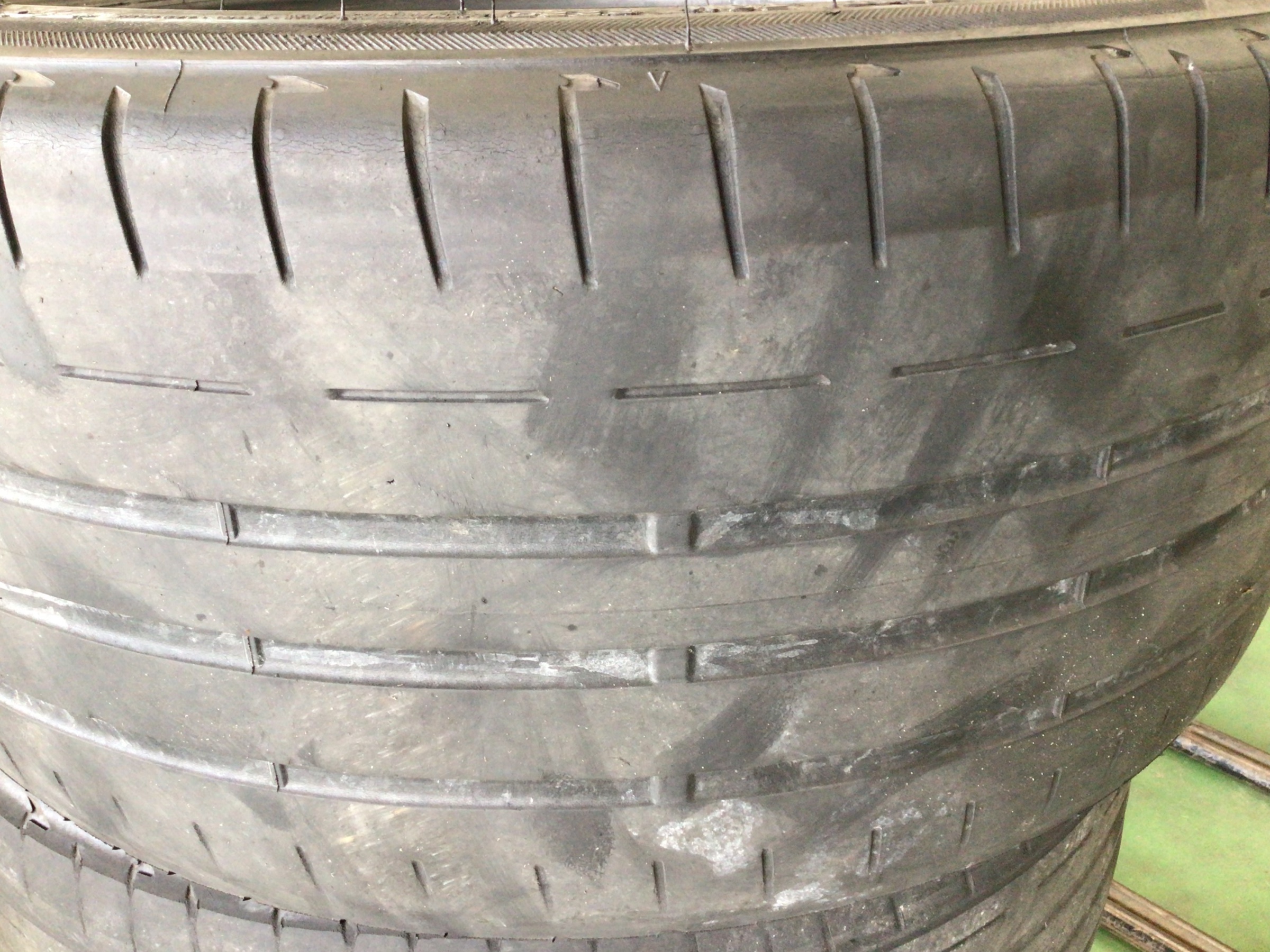 タイヤの溝はなく、スリップサインも出ている状態でした。