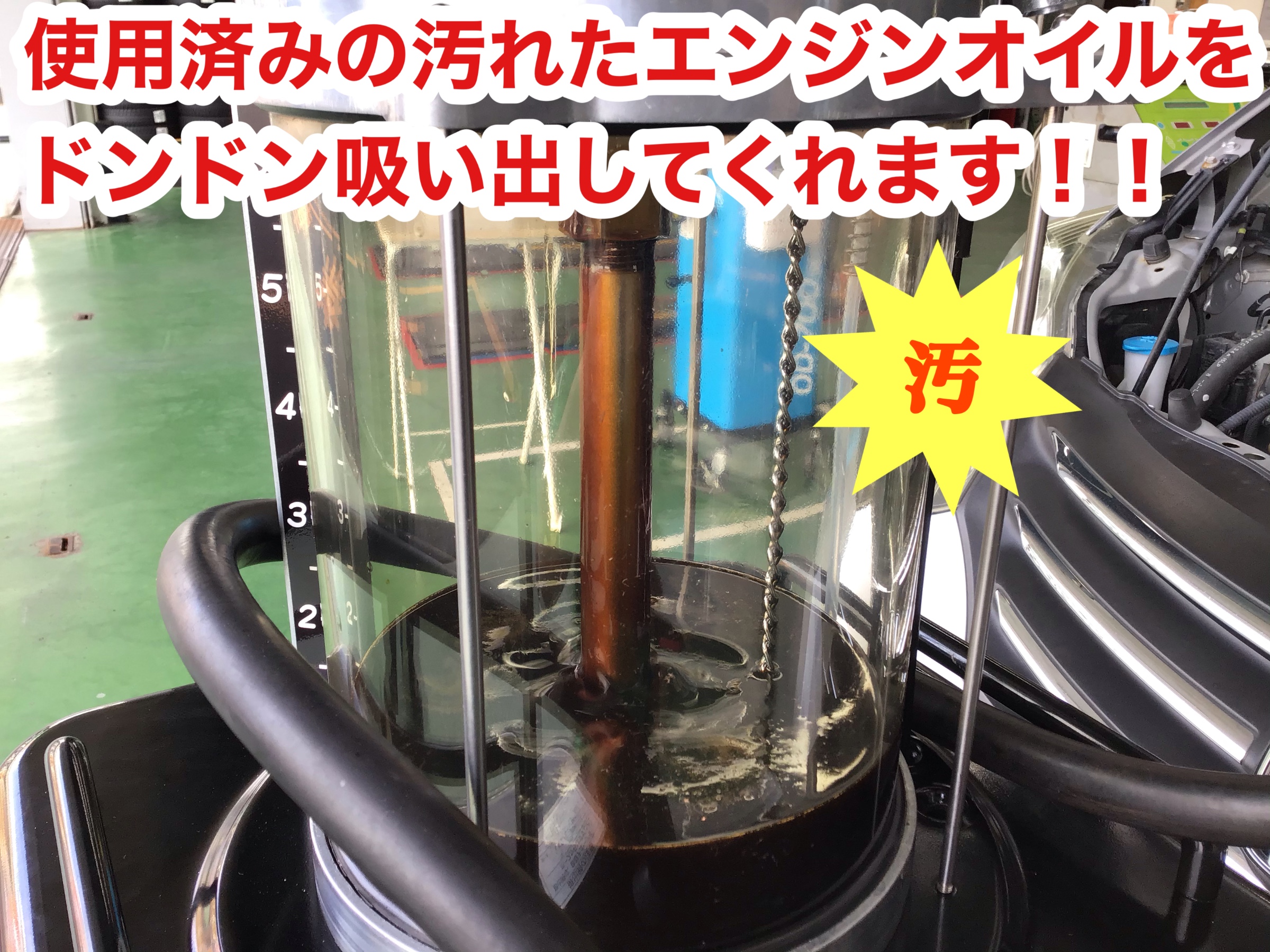 上抜きチェンジャーが汚れたエンジンオイルを