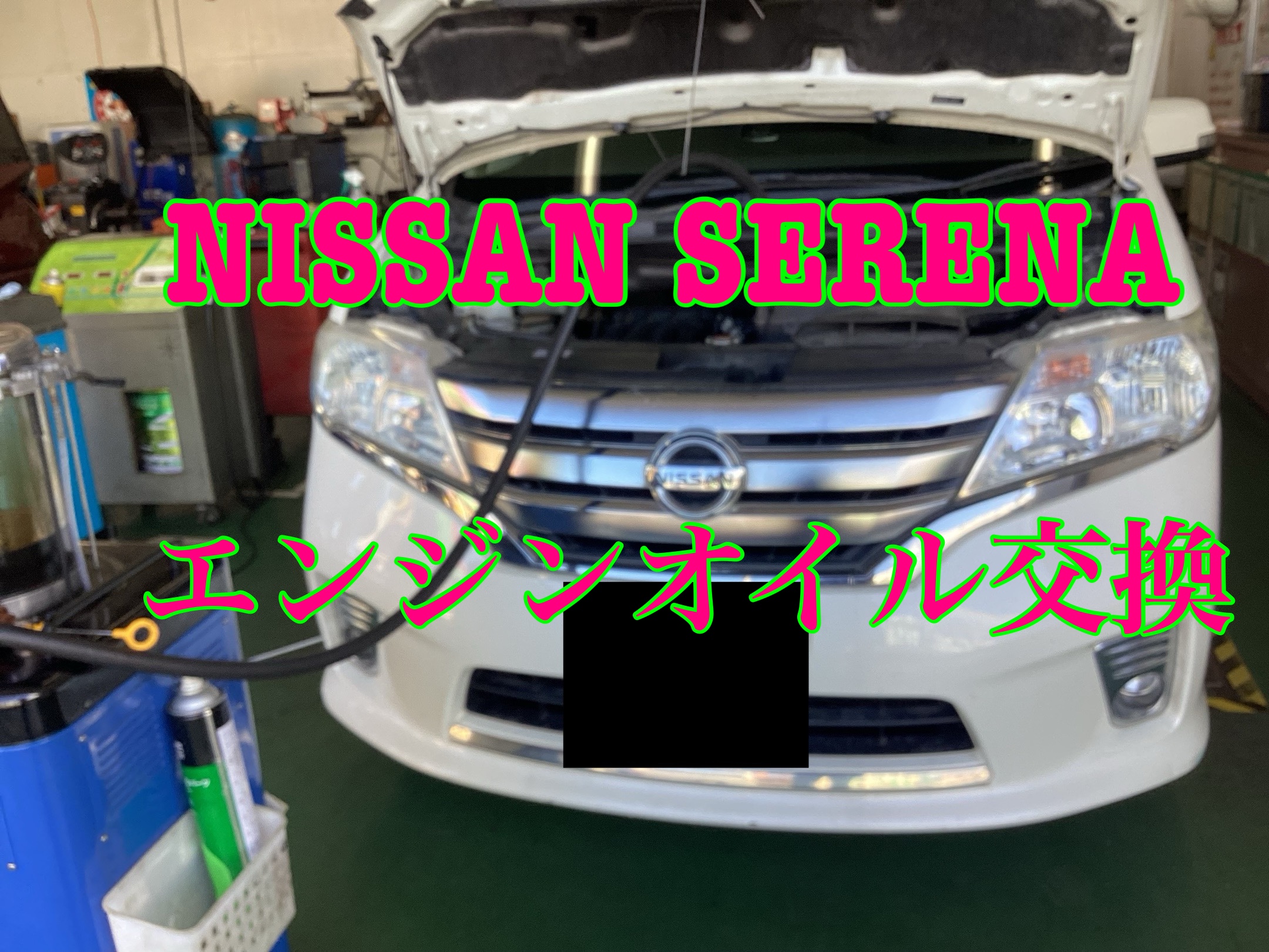日産・セレナのエンジンオイル交換のご紹介です。
