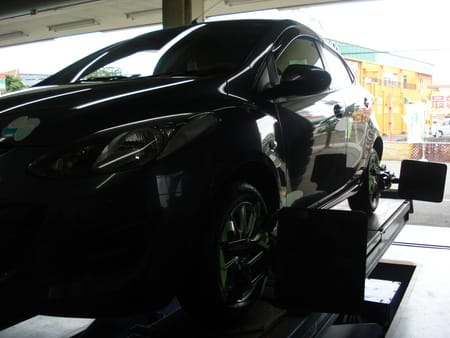 ・本日はデミオでご来店のお客様に タイヤ ホイール アライメント