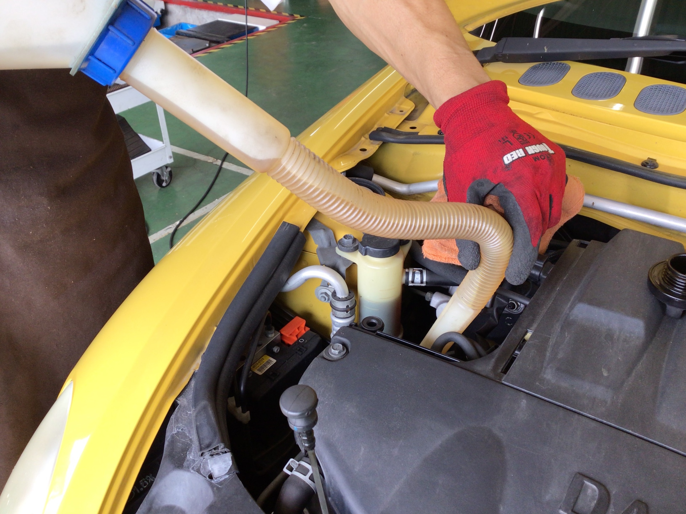 上抜き機を使いオイルを抜いていきます!上抜きのメリットは……