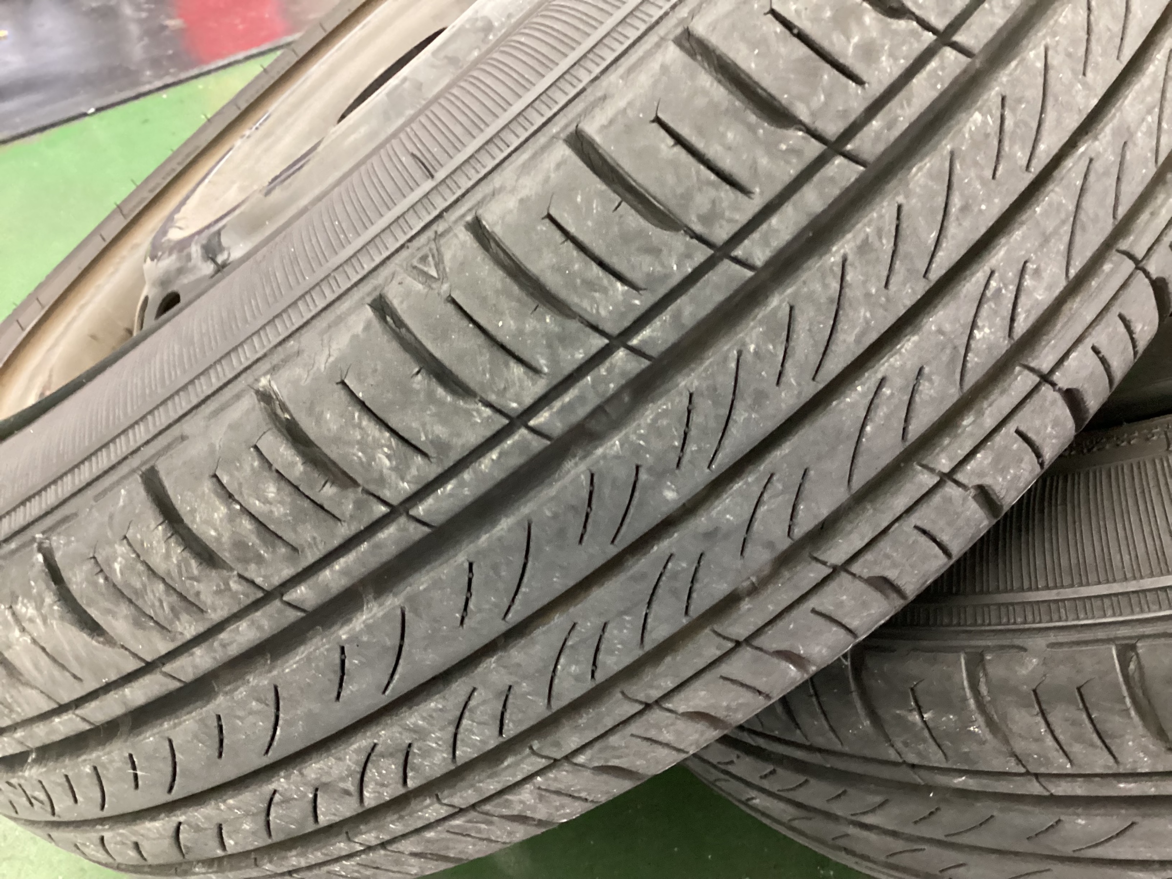 あまり走行されていない様子でしたのでタイヤ内部にの劣化防止剤が出にくいことや直射日光による劣化が原因と思われます。