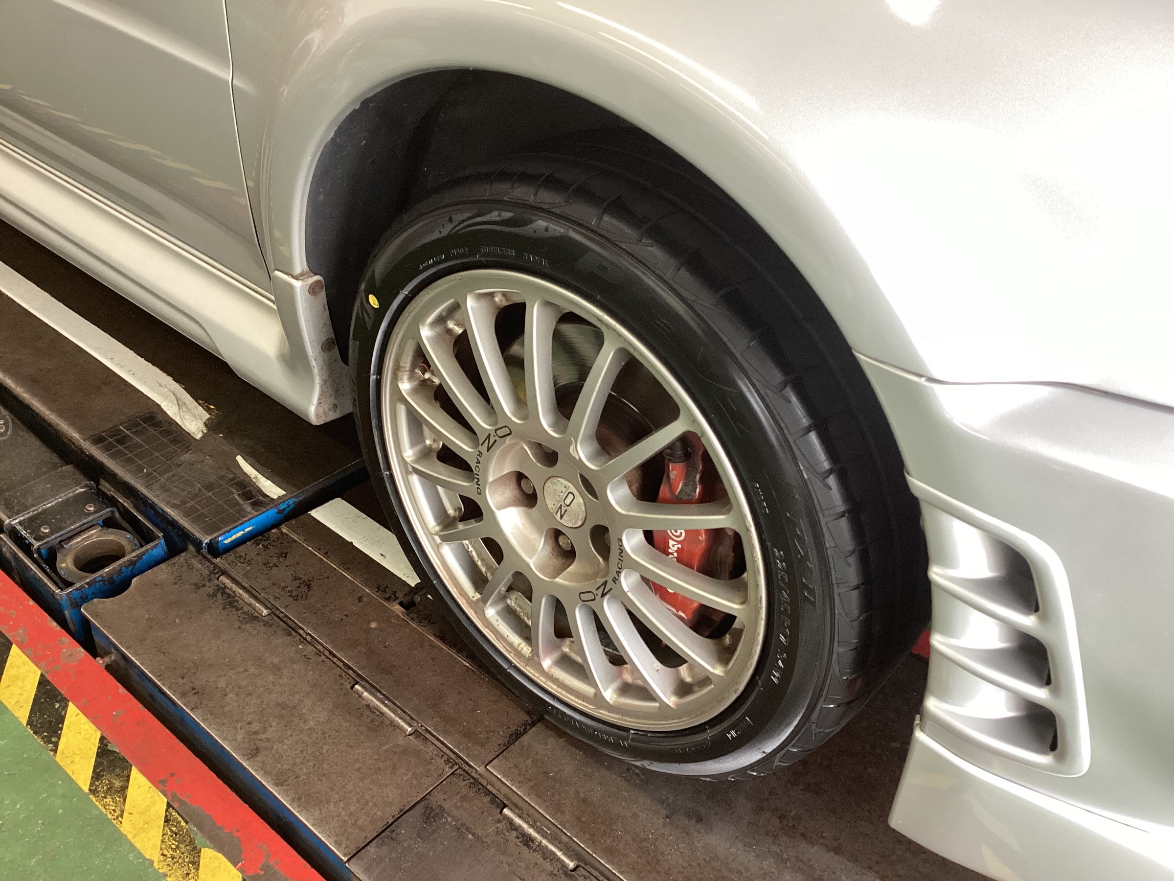 「三菱・ランサーエボリューション」でタイヤ交換を行いましたので