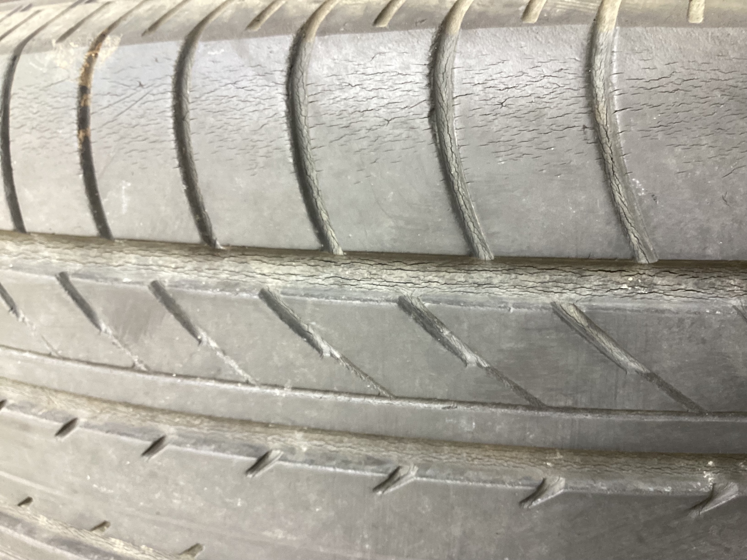 タイヤはヒビ割れていて、さらに釘が刺さった状態のものもありました。