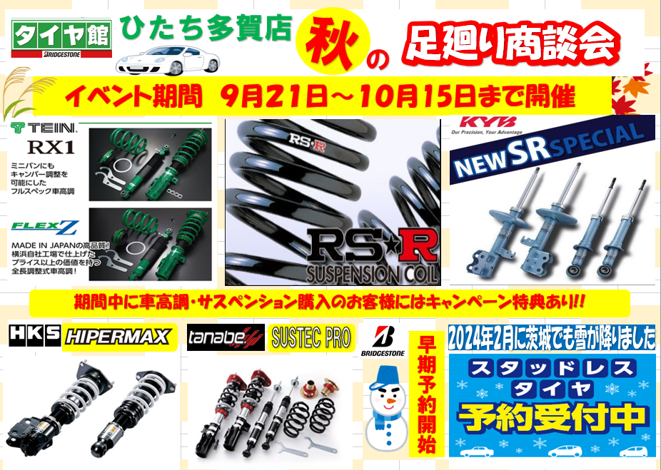 当店WEBで何度も宣伝しておりますが、足回り大商談会が9月21日(土)〜10月15日(火)まで開催されます!
