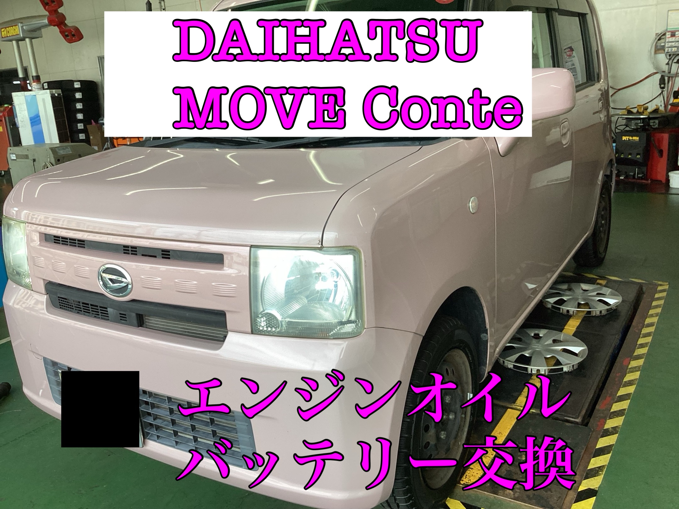 今回はダイハツ・ムーヴコンテのエンジンオイルとバッテリーの交換をご紹介します。