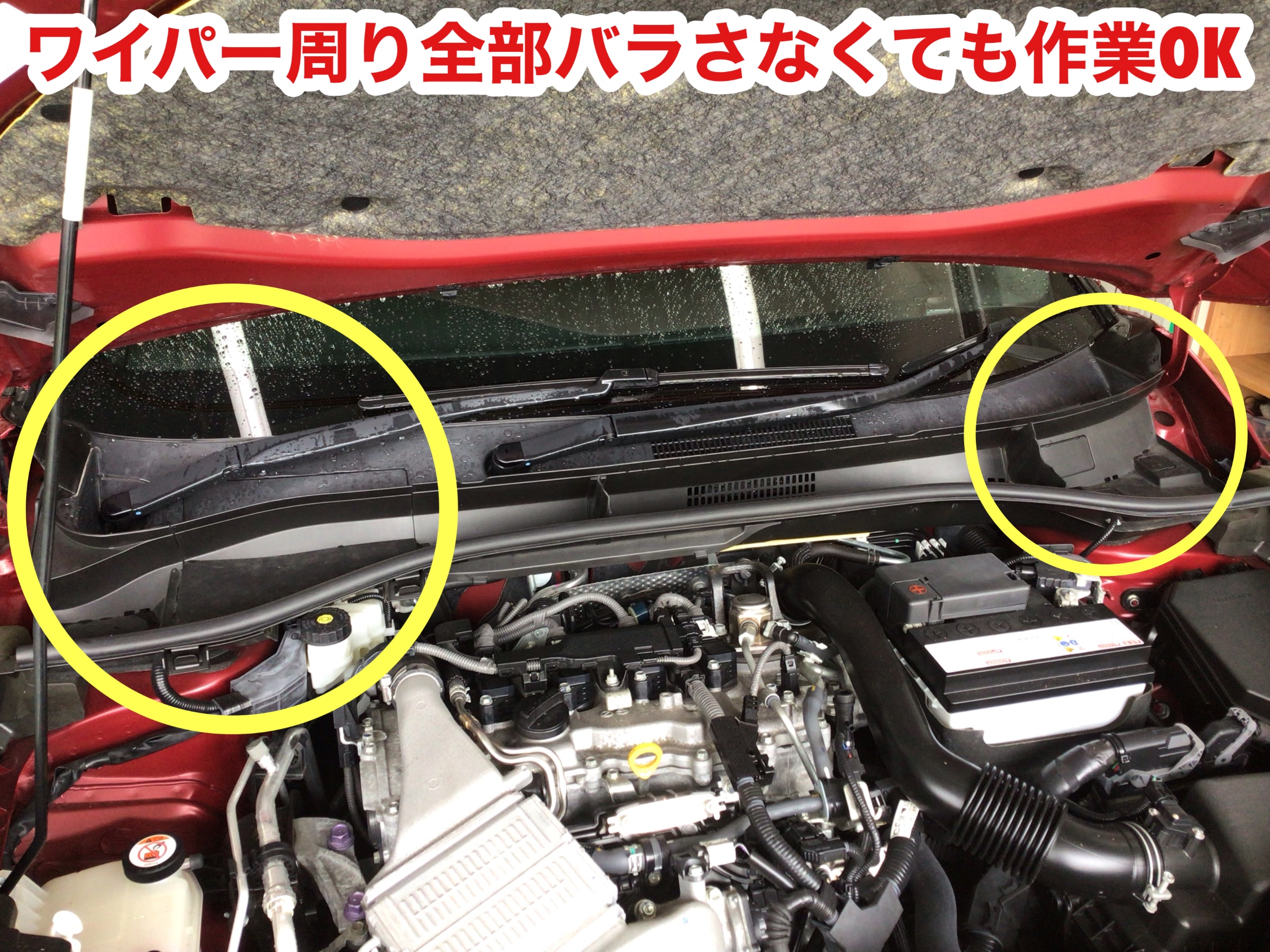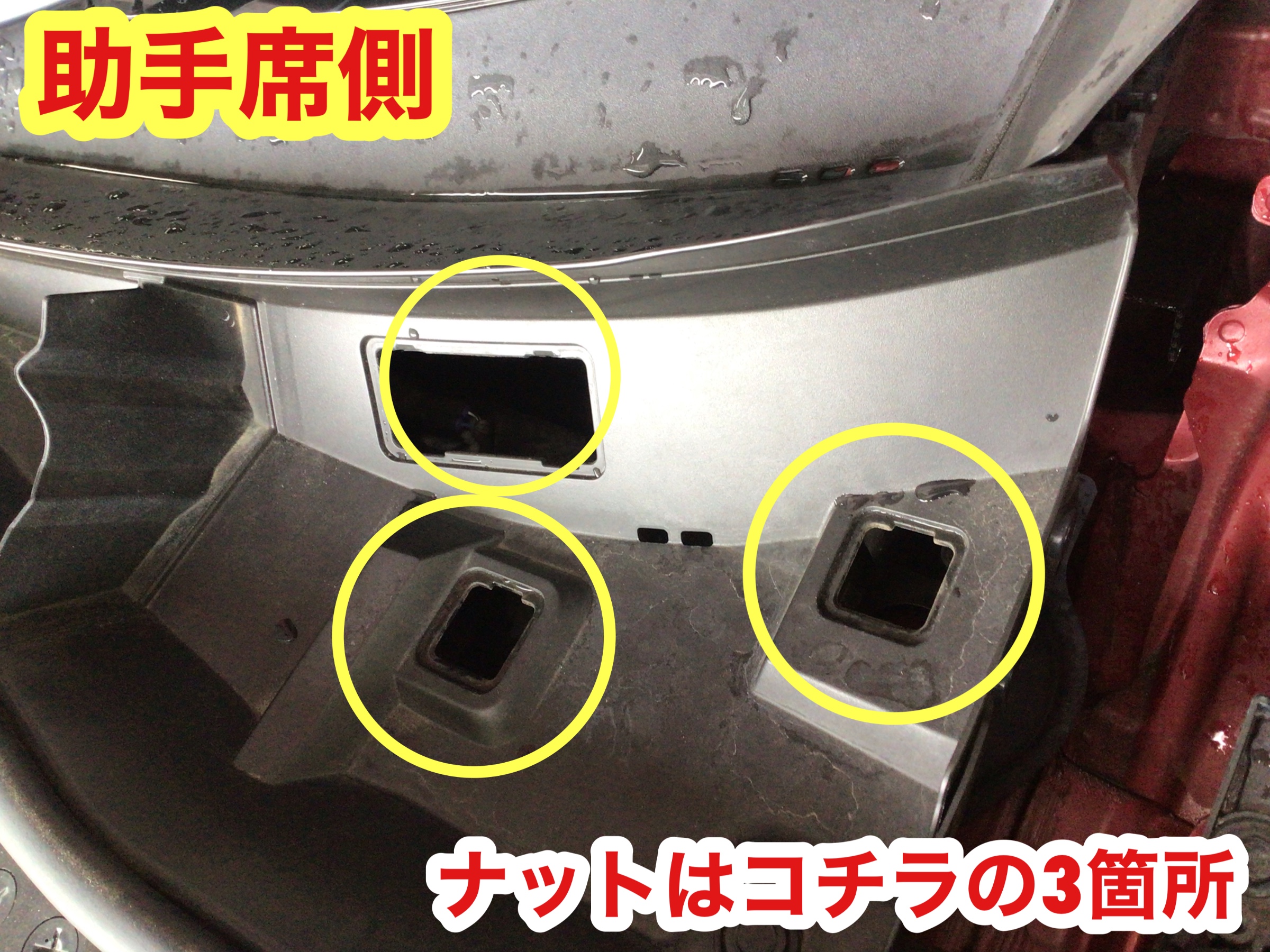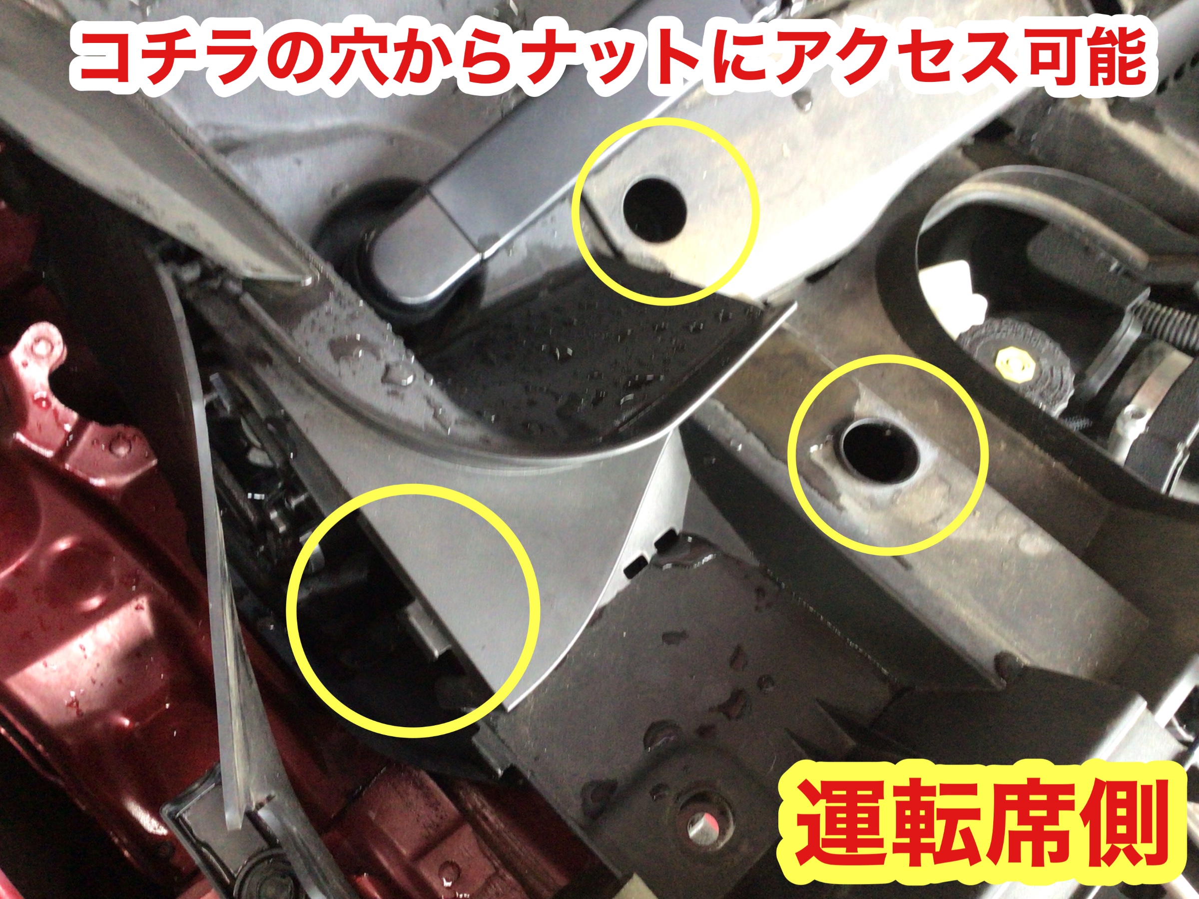 運転席側は丸いホール部分とゴムシートの裏側から