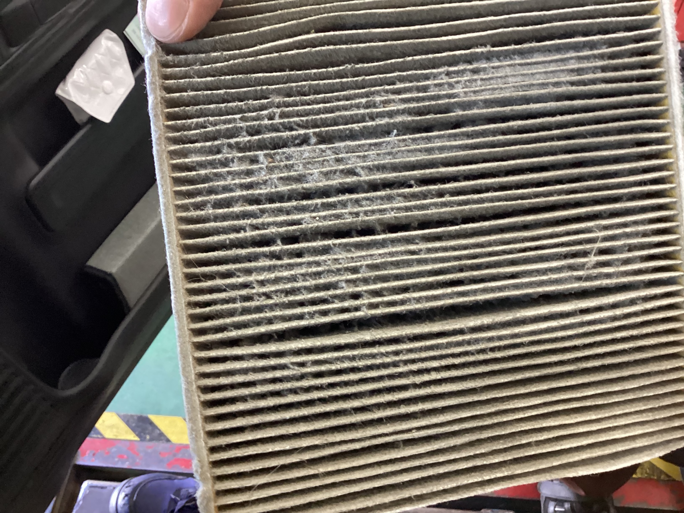 エアコンフィルターを外して見てみると埃などがかなり詰まって