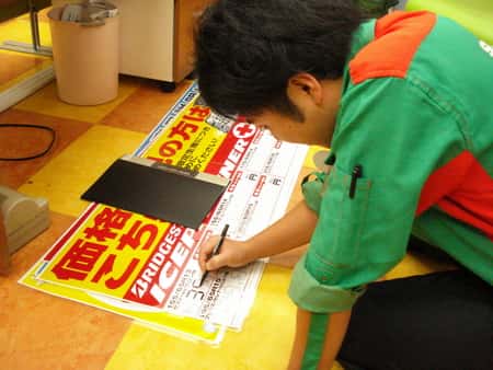 POP作成中 ポスト 2015年11月5日 こんにちは!カタオカです^^本日は空いた時間を使いながらPOPを作成しております!今回のPOPはスタッドレスタイヤの値段早見表です。見積もりのみの来店大歓迎ですので是非宜しくお願いします^v^/ 担当:カタオカ