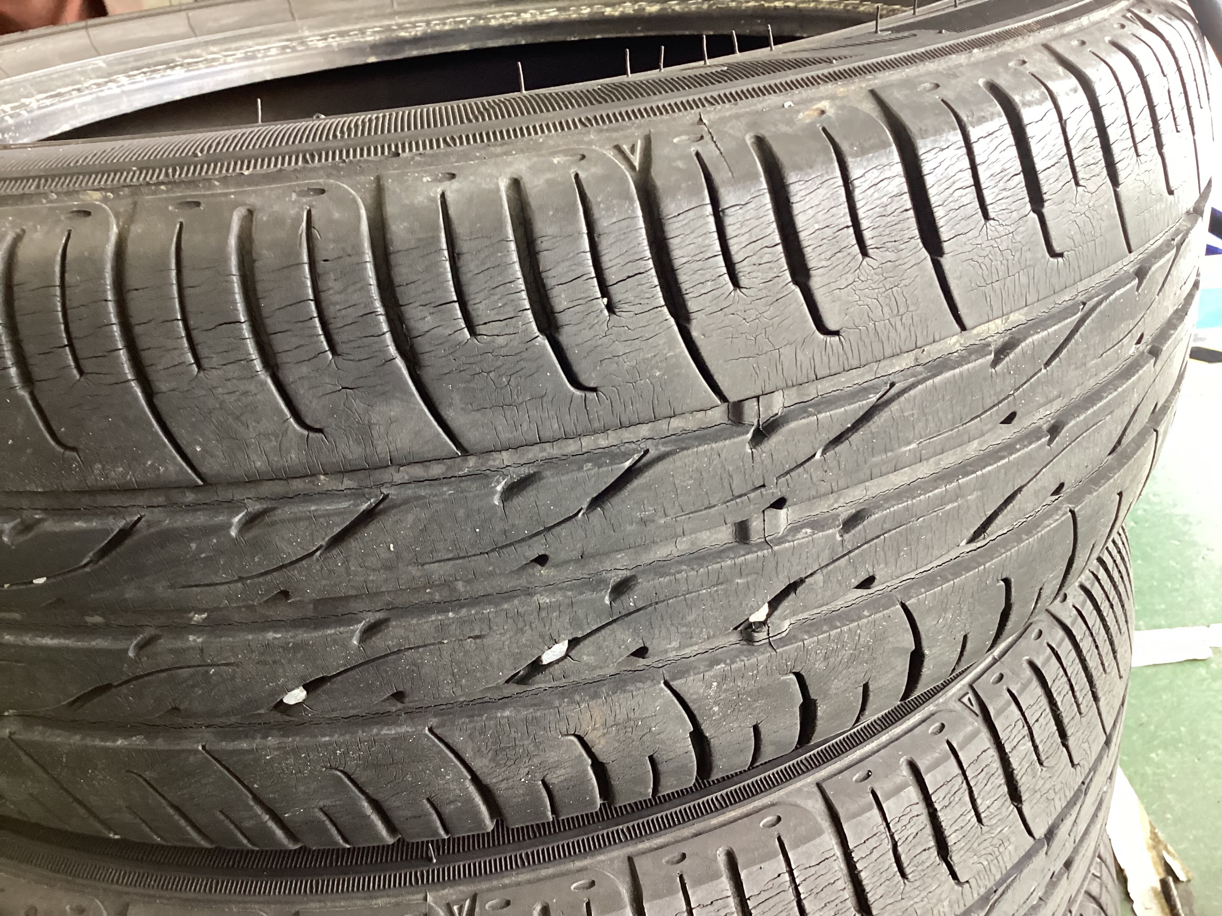 交換前のタイヤは2017年製で約8年前のタイヤになります。