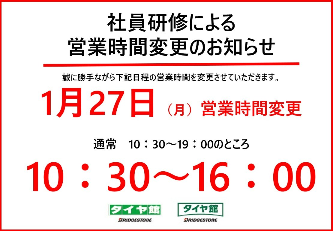 1月27日営業時間変更のお知らせ