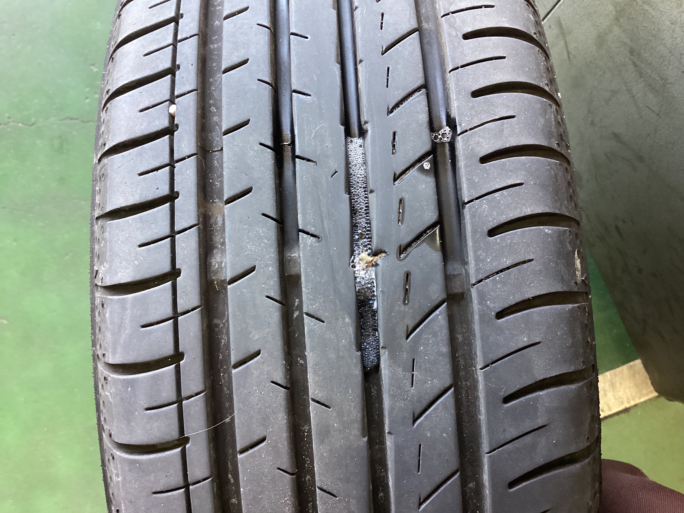 タイヤの状況を確認してからの修理になりますので、タイヤ劣化が