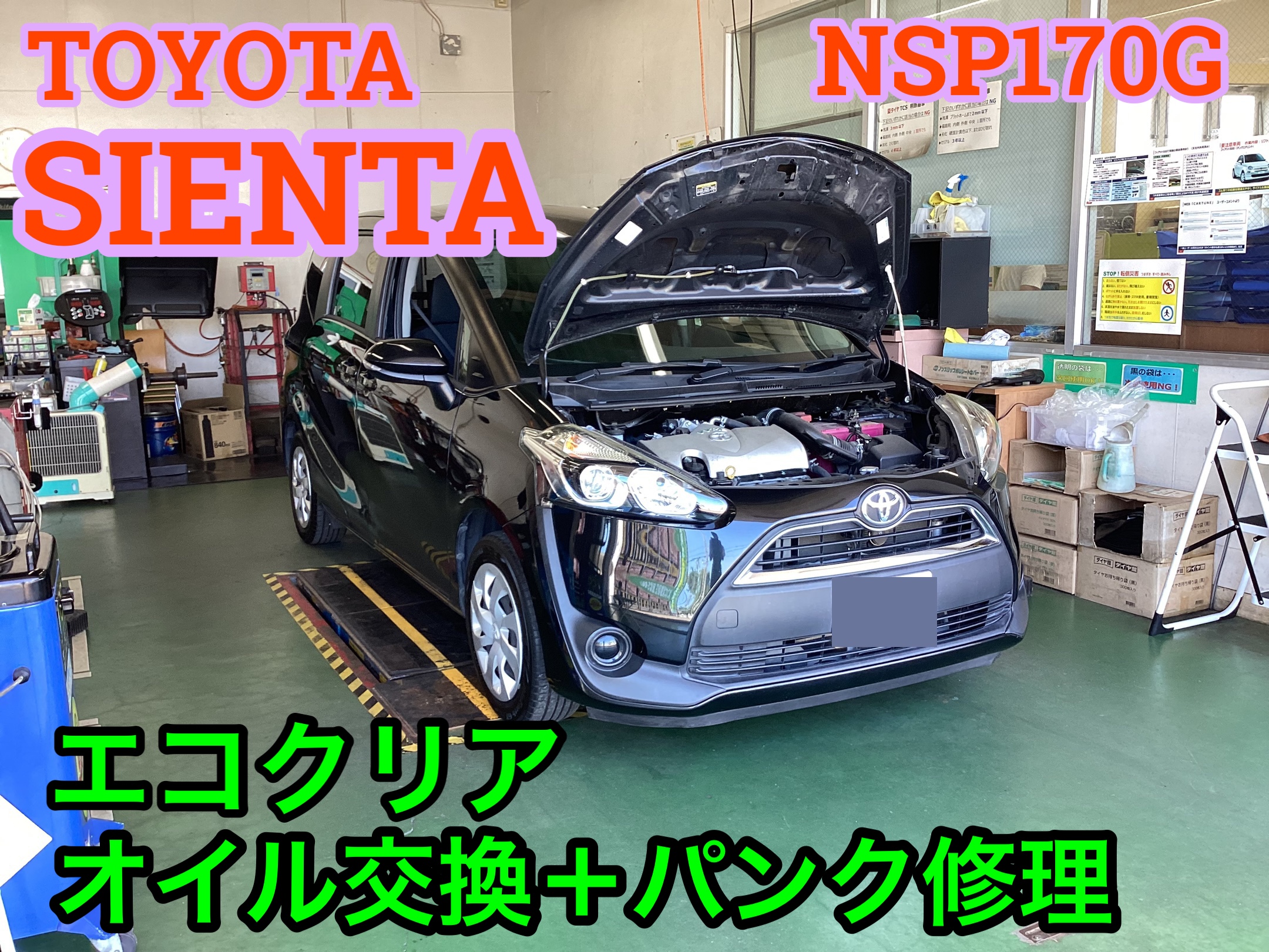 トヨタ・シエンタ(NSP170G)〜オイル交換+パンク修理〜