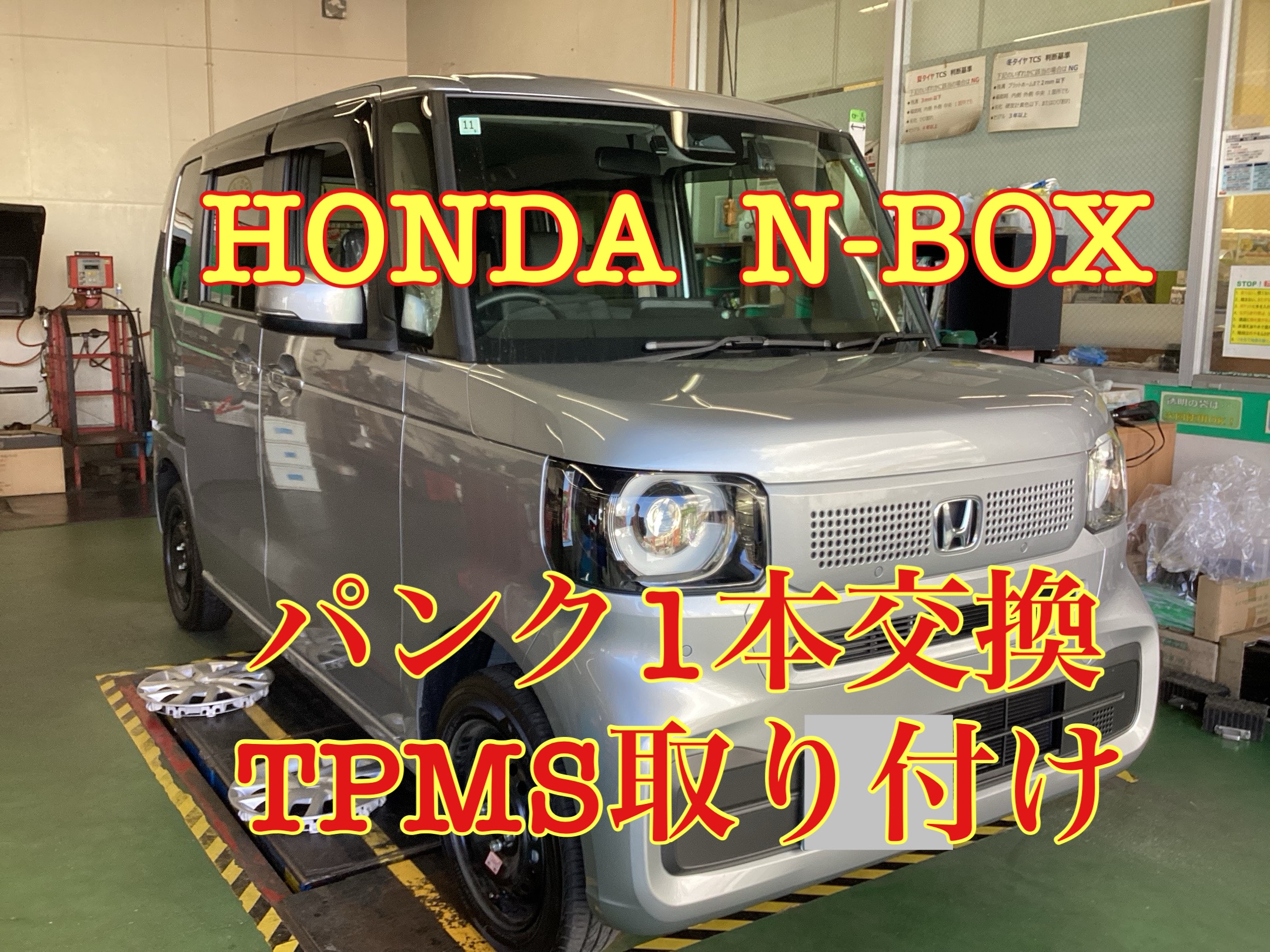 今回はホンダ・N-BOXのパンク1本交換とTPMSのお取り付けを行いましたのでご紹介します。
