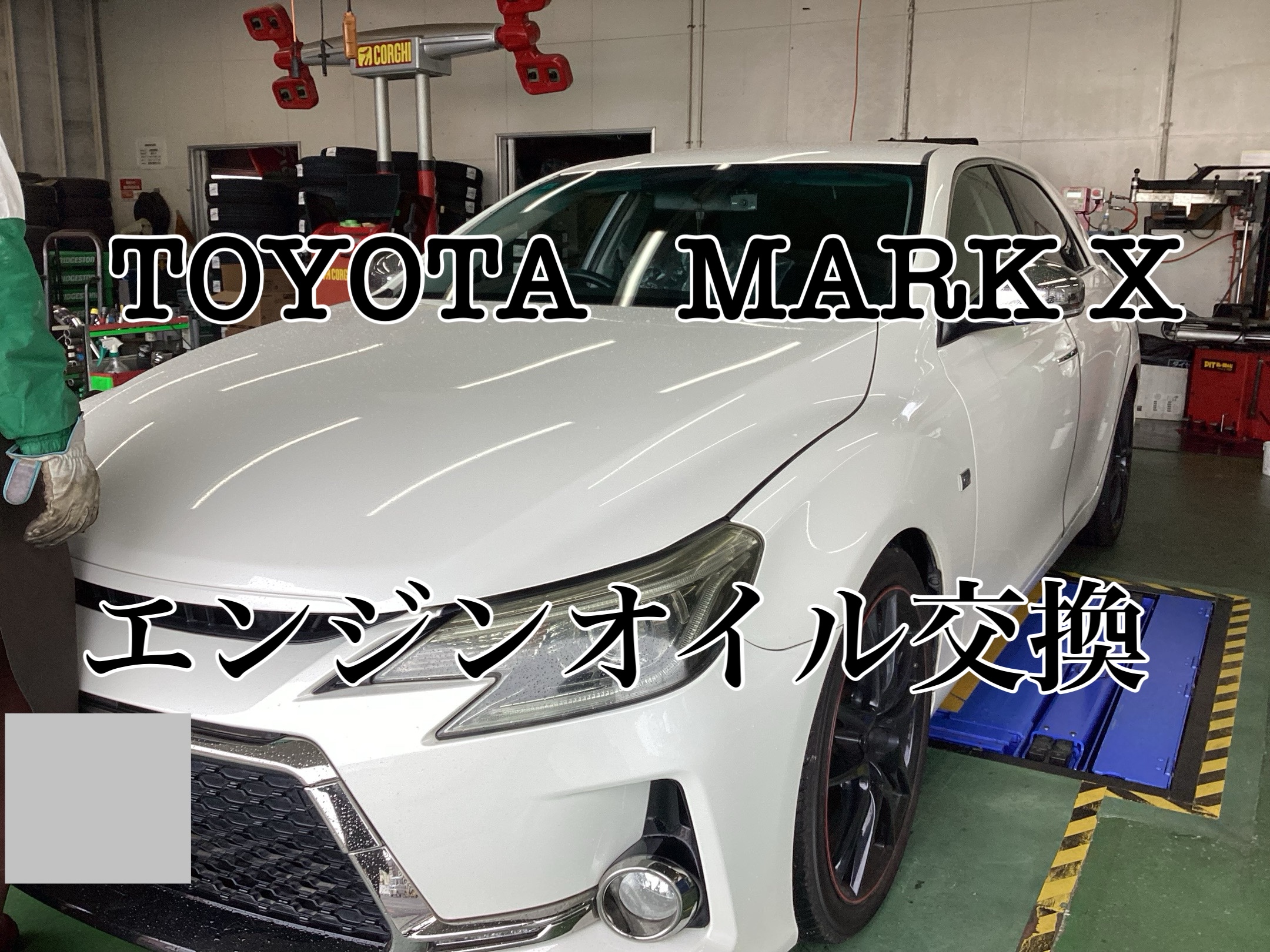 トヨタ・マークXのエンジンオイル交換をご紹介します。