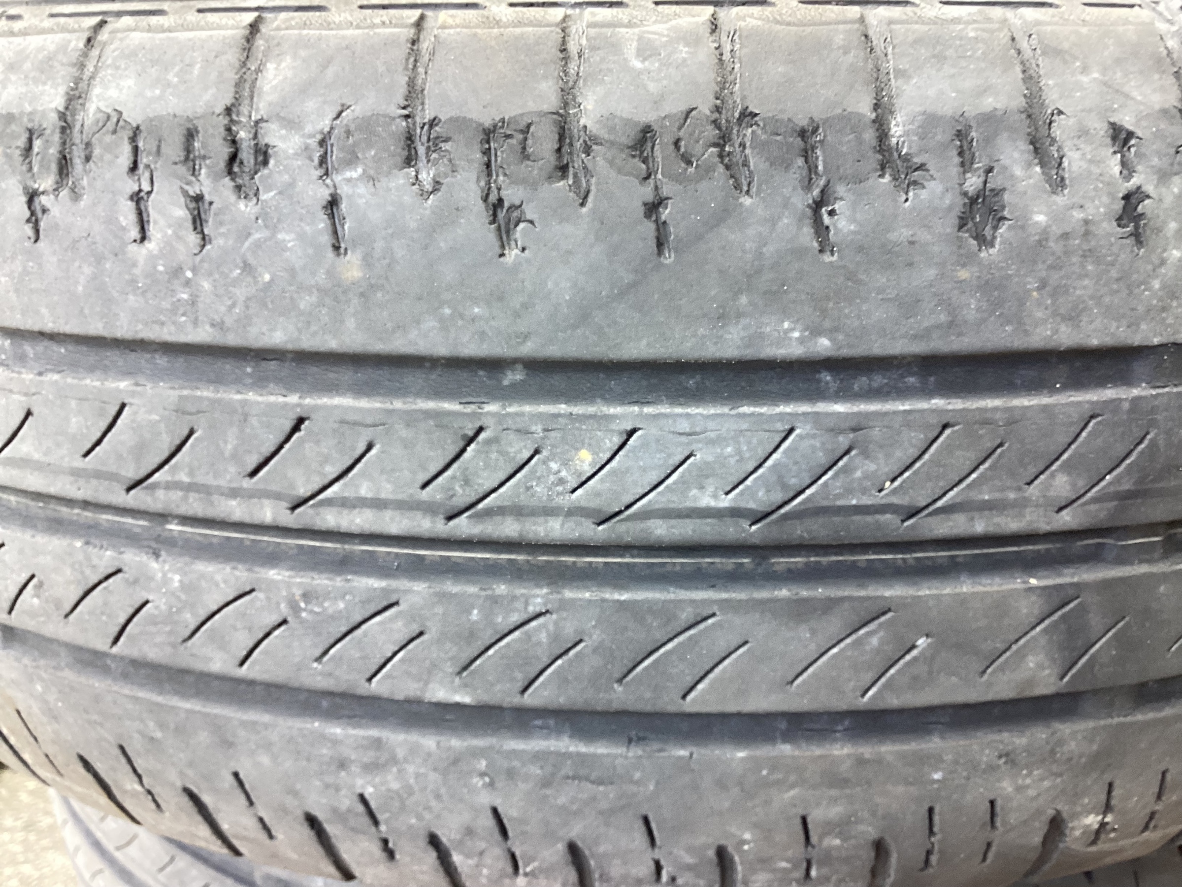 タイヤは偏摩耗とひび割れがある状態でした。