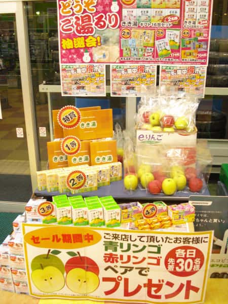 ご来店して頂いたお客様には(先着30名)青りんご、赤りんごをペアで差し上げます^^