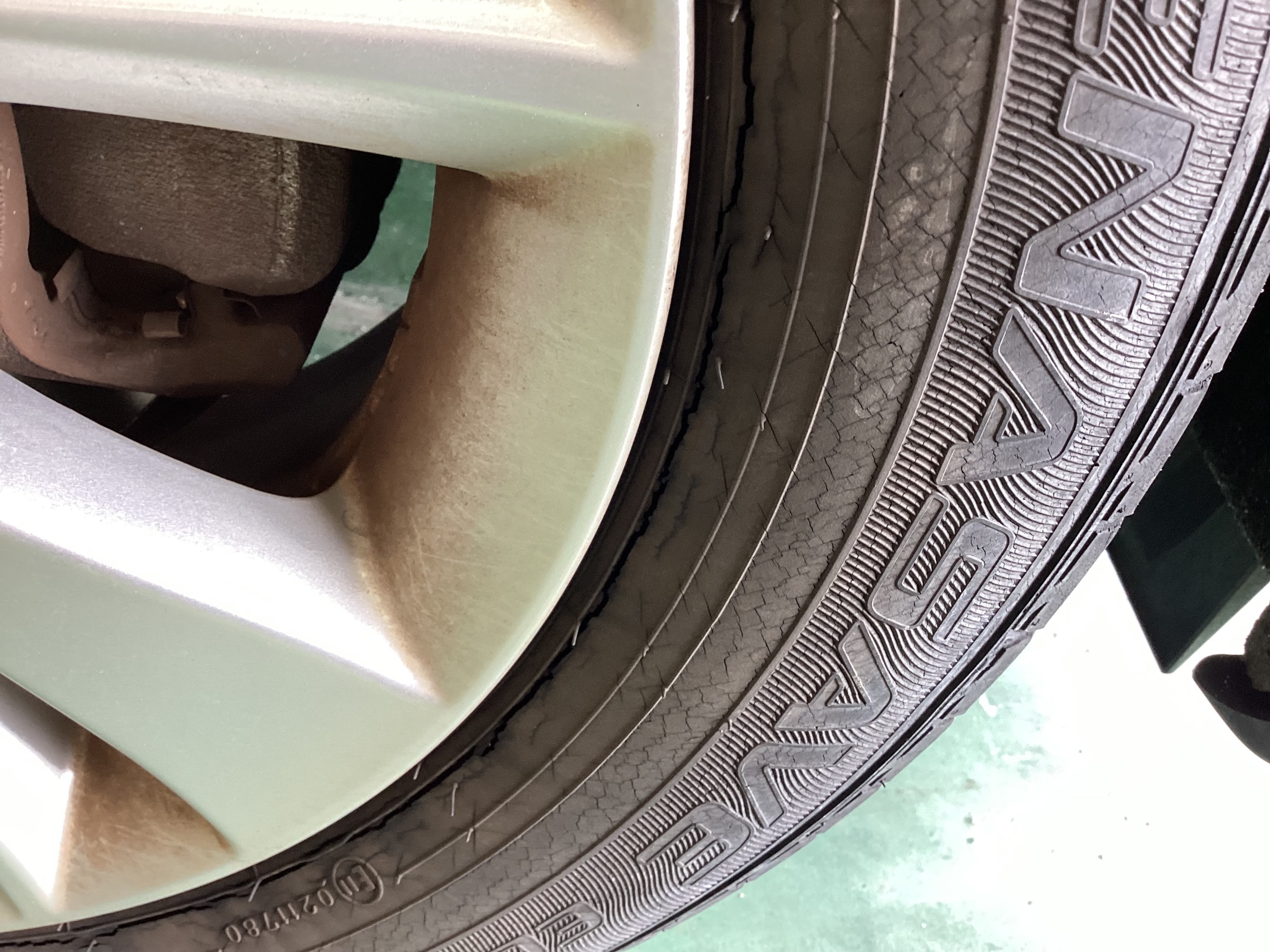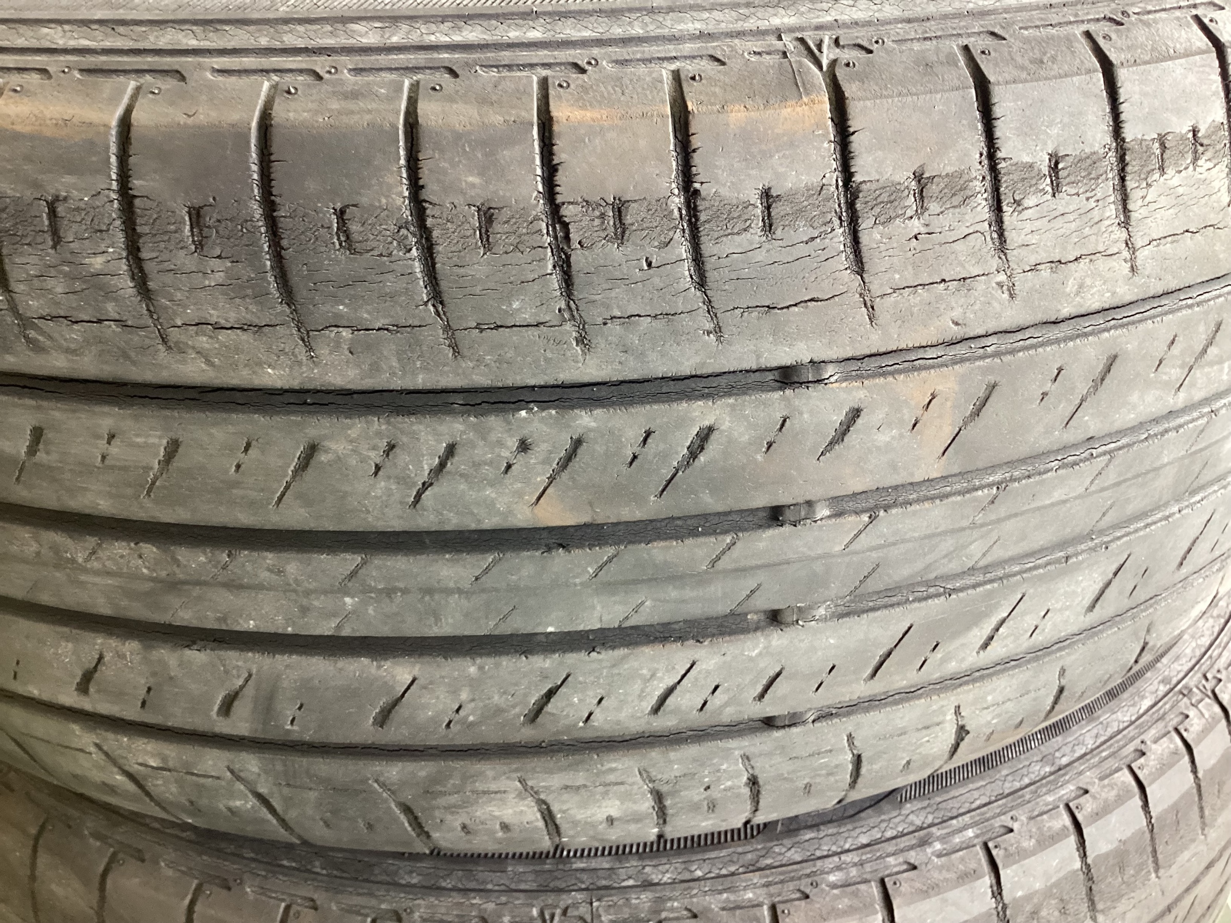 分かる通りトレッド面、サイド共にかなりのひび割れが発生して