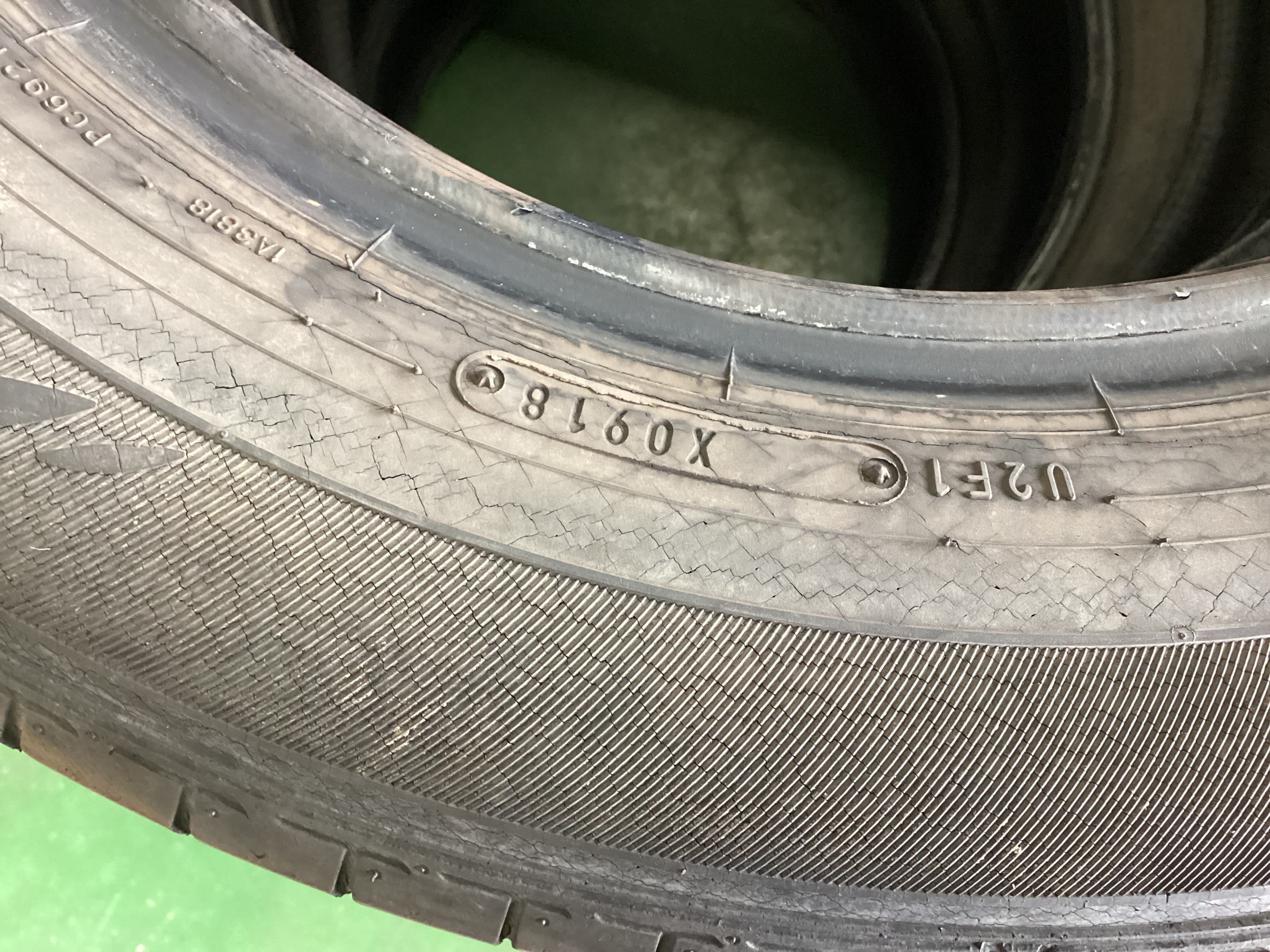 交換前のタイヤは2018年製でした。下の写真を見てもらうと