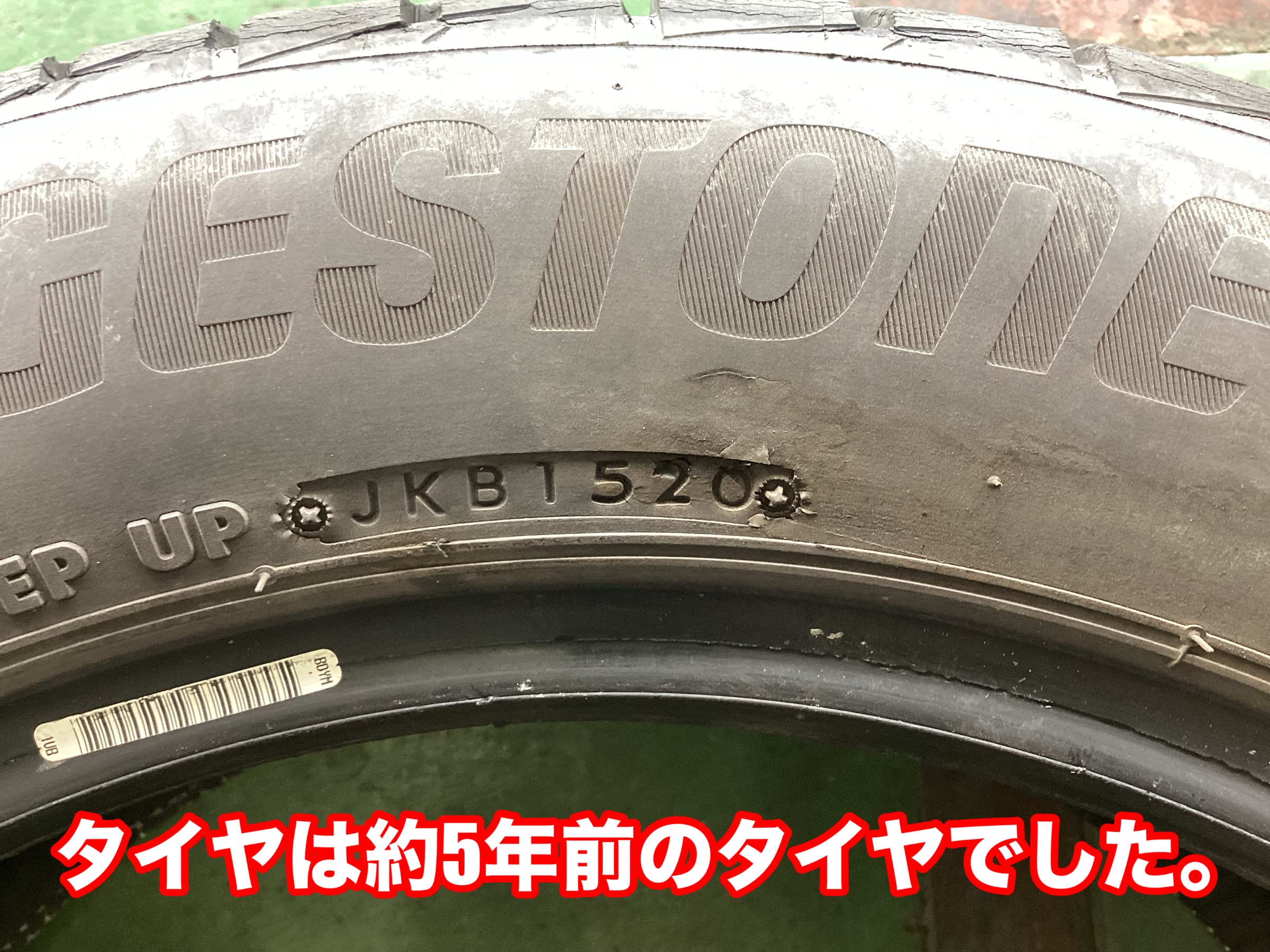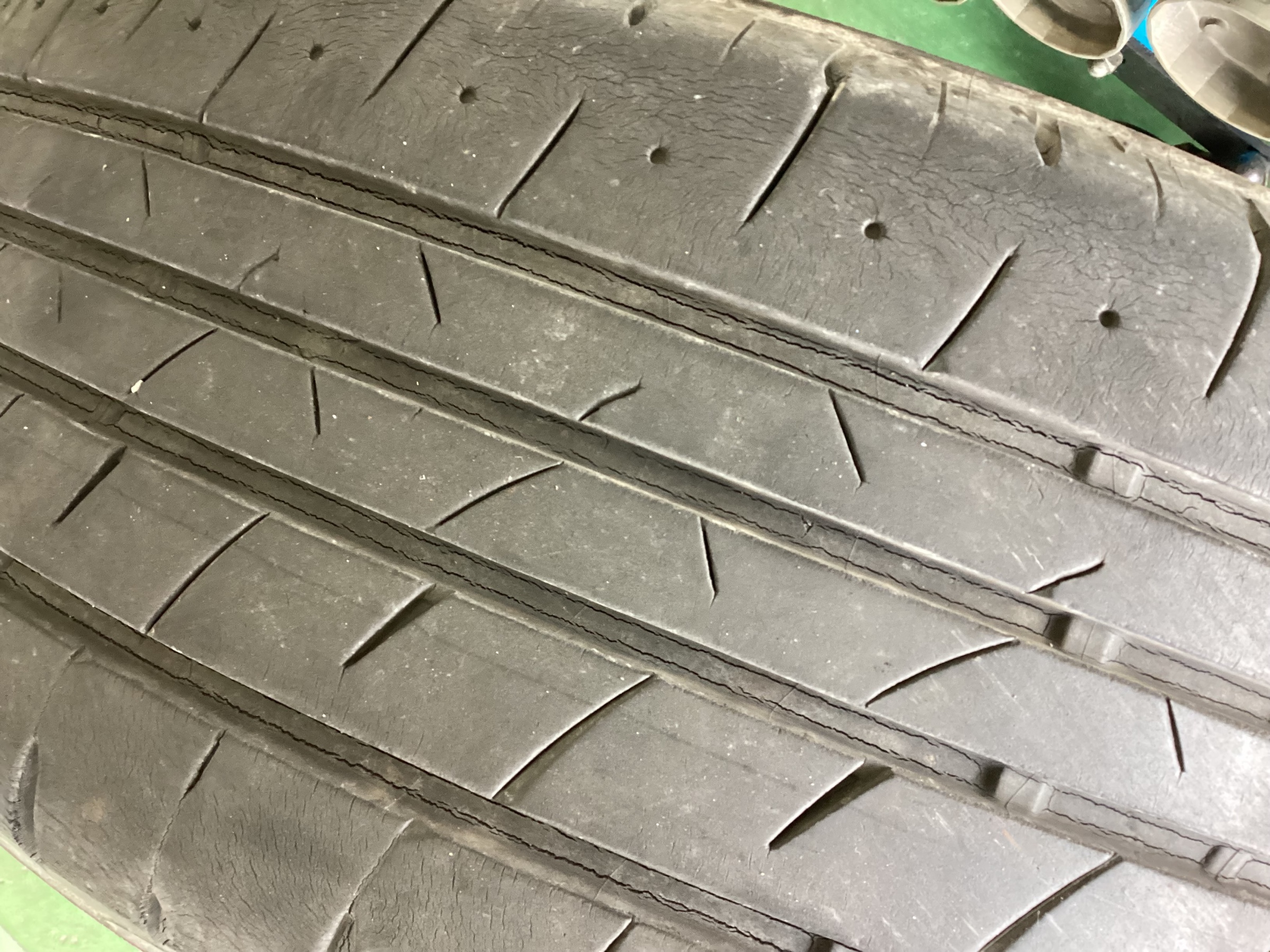 タイヤの溝はかなり減っている状態で、全体的にひび割れしている