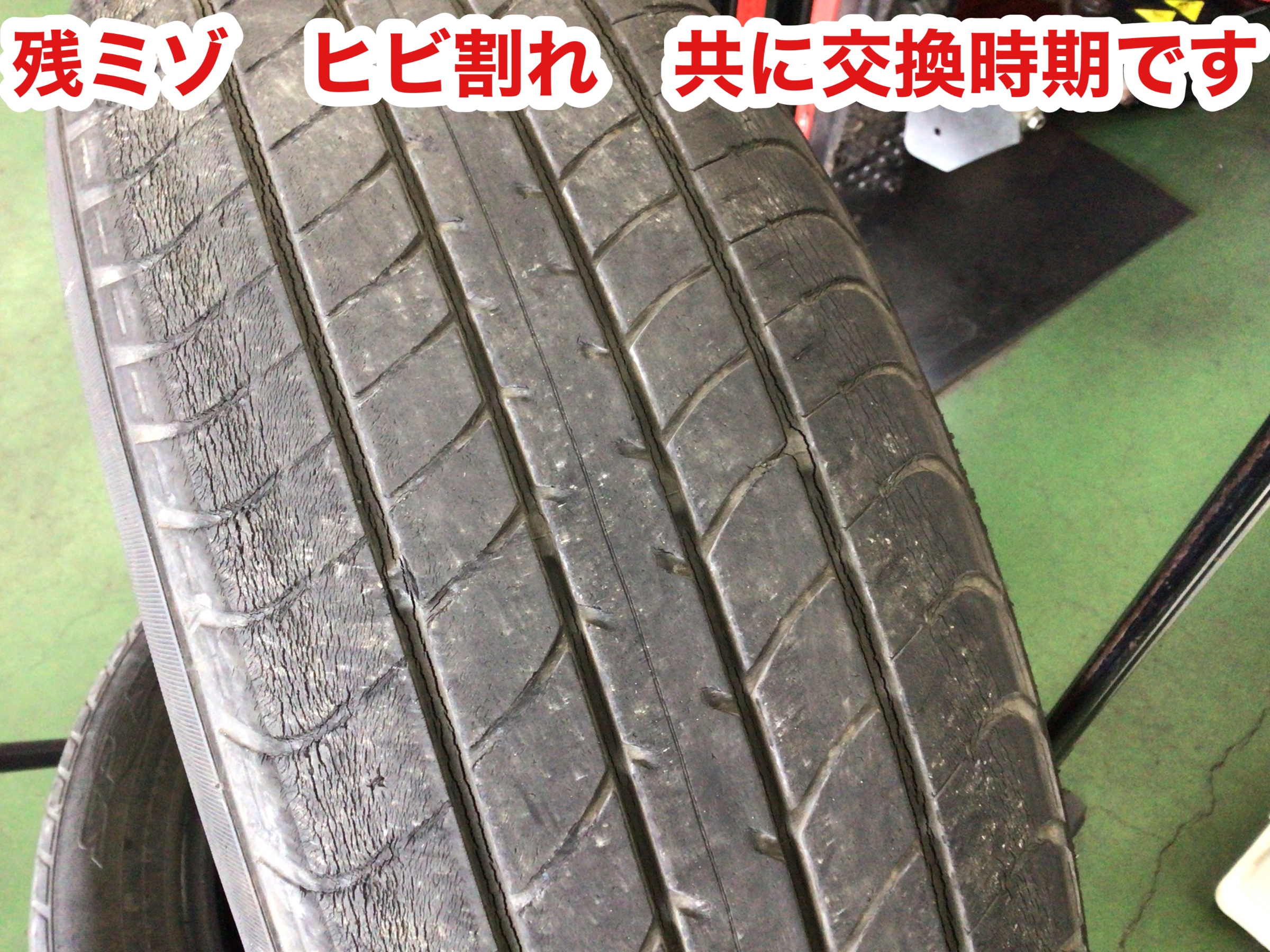 タイヤには経年劣化で細かいヒビ割れが多数!