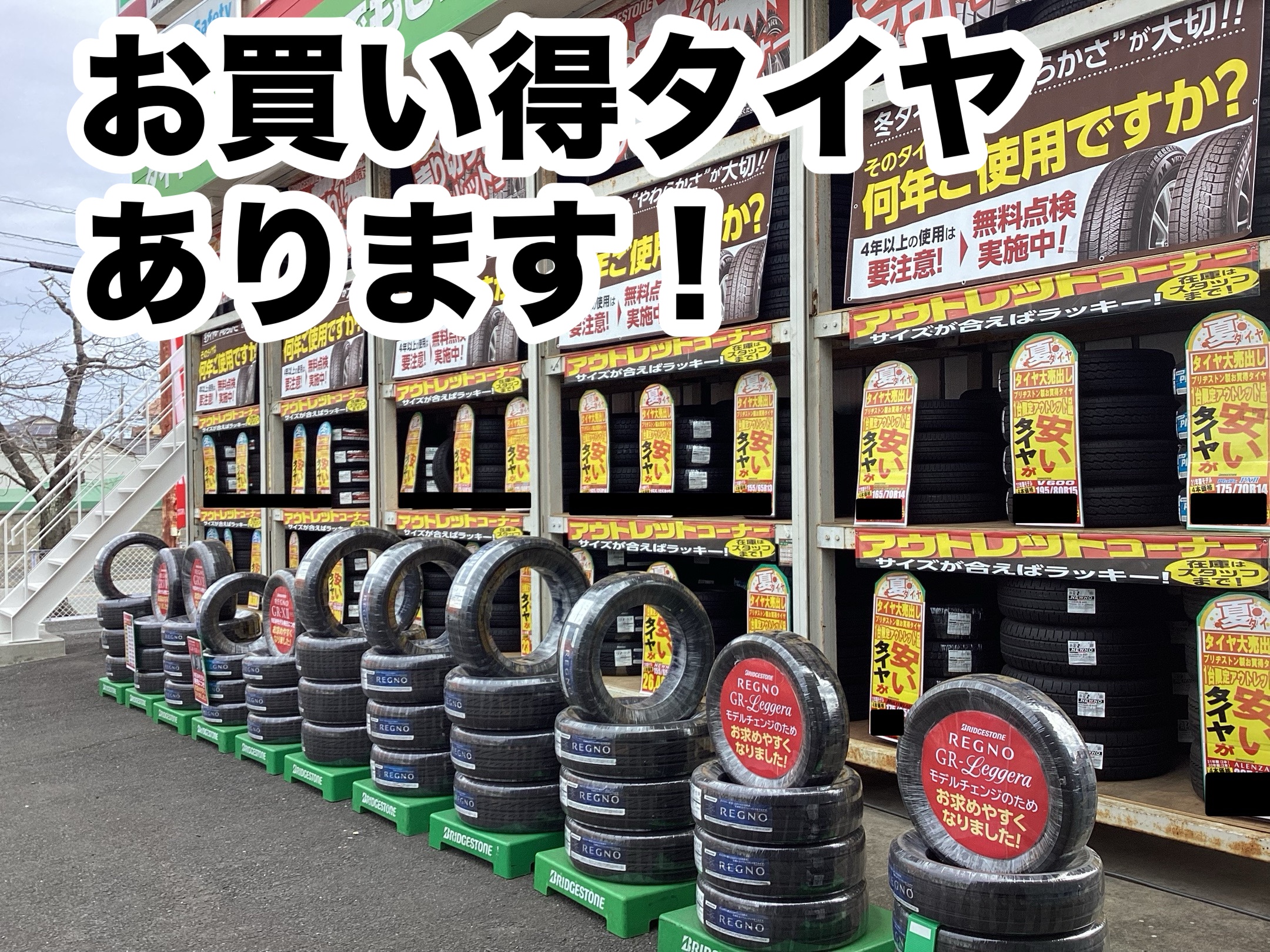 タイヤ館ひたち多賀店では、アウトレット商品をお取り扱いしています。
