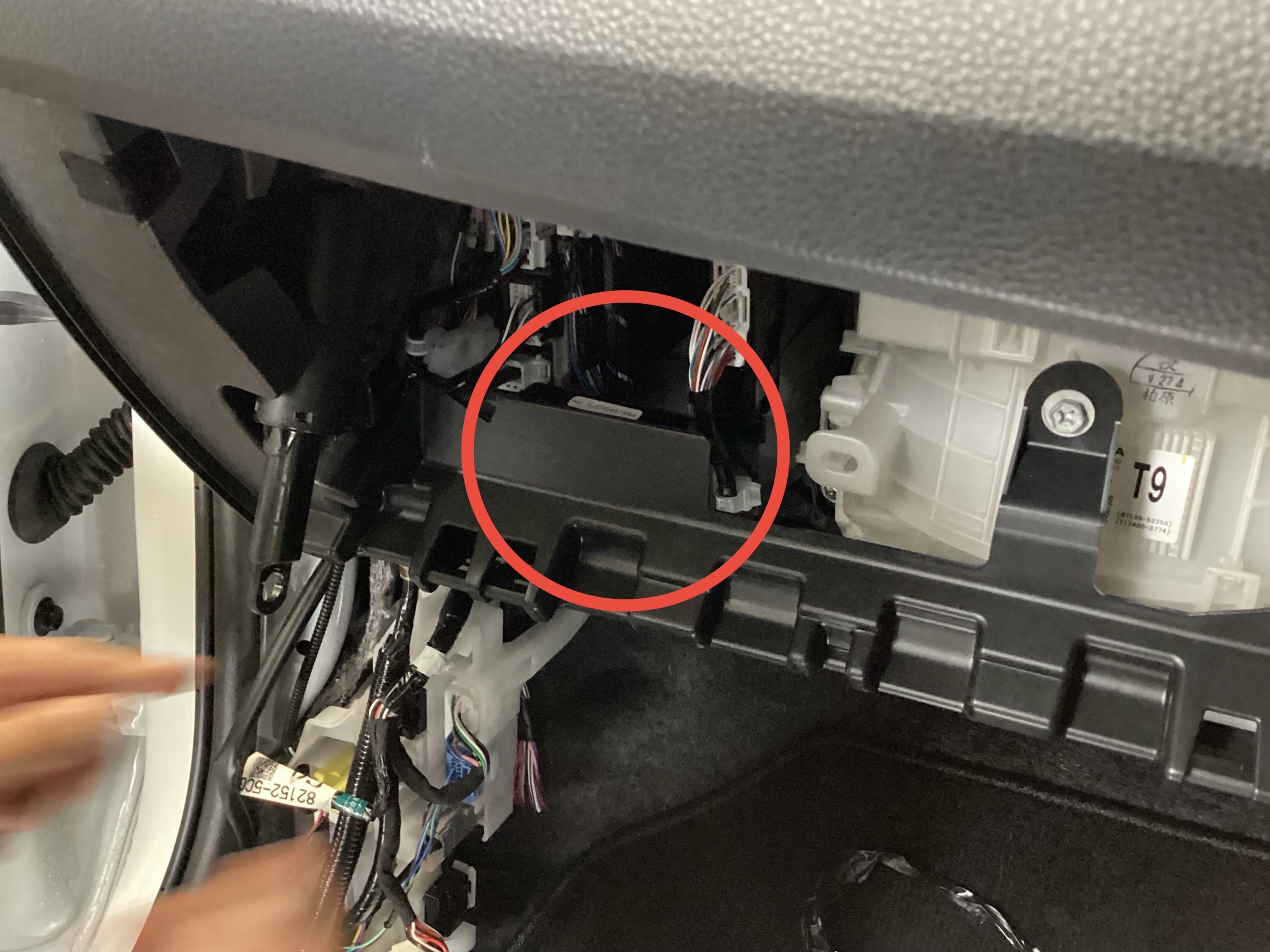 本体のユニットは邪魔にならないグローブボックス奥に貼り付け