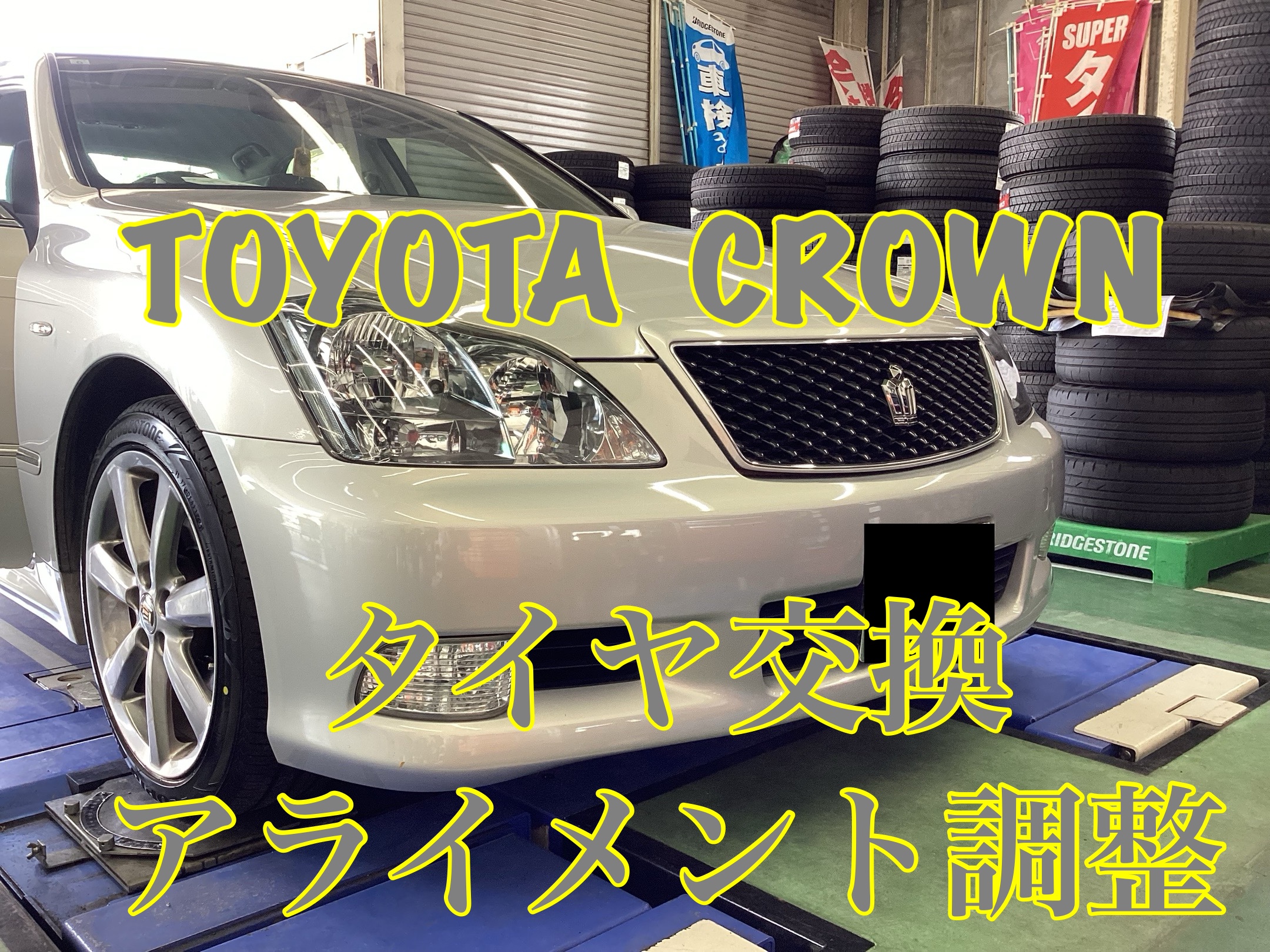 今回はトヨタ・クラウンのタイヤ交換とアライメント調整をご紹介致します。