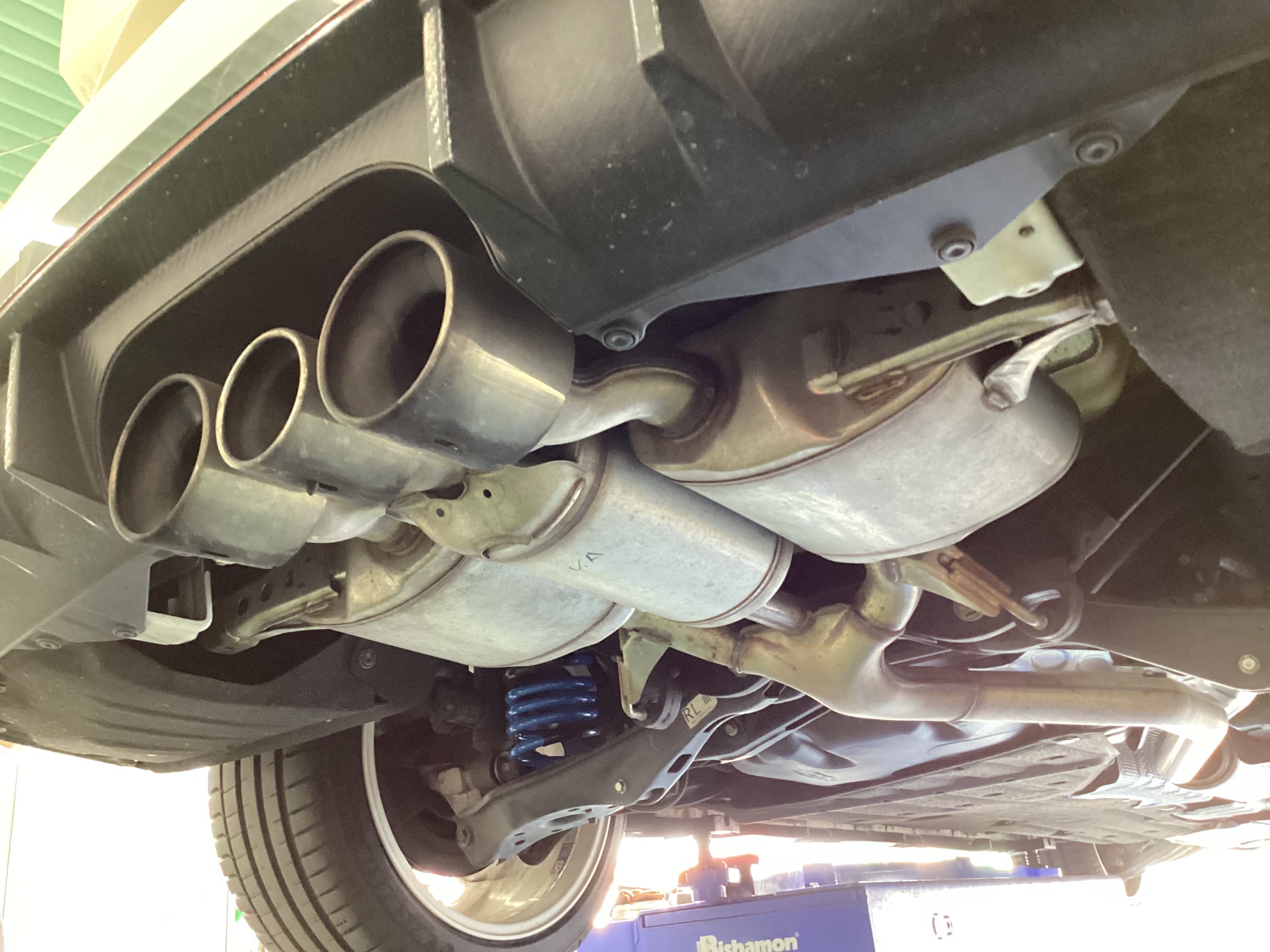 純正でも3本出しのゴツいマフラーが装着されています。
